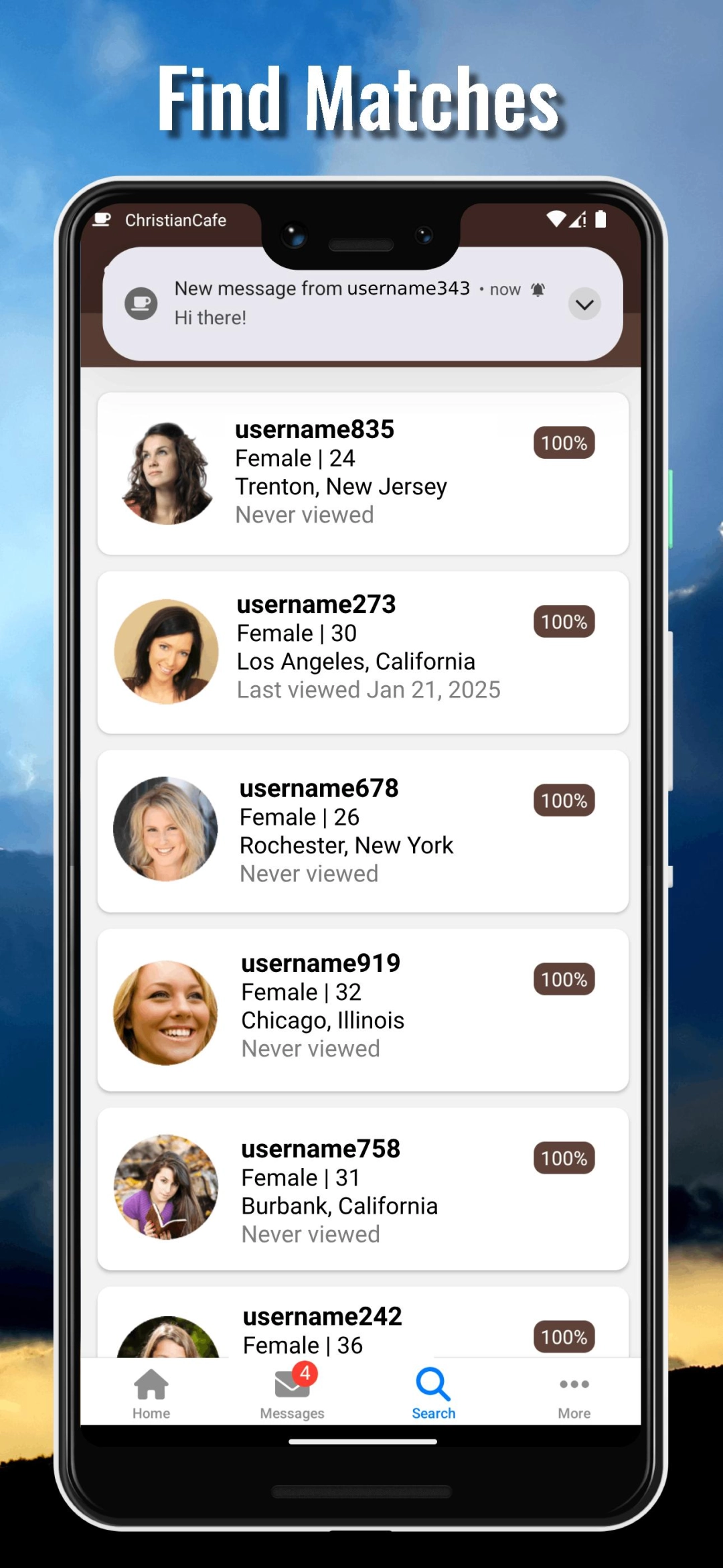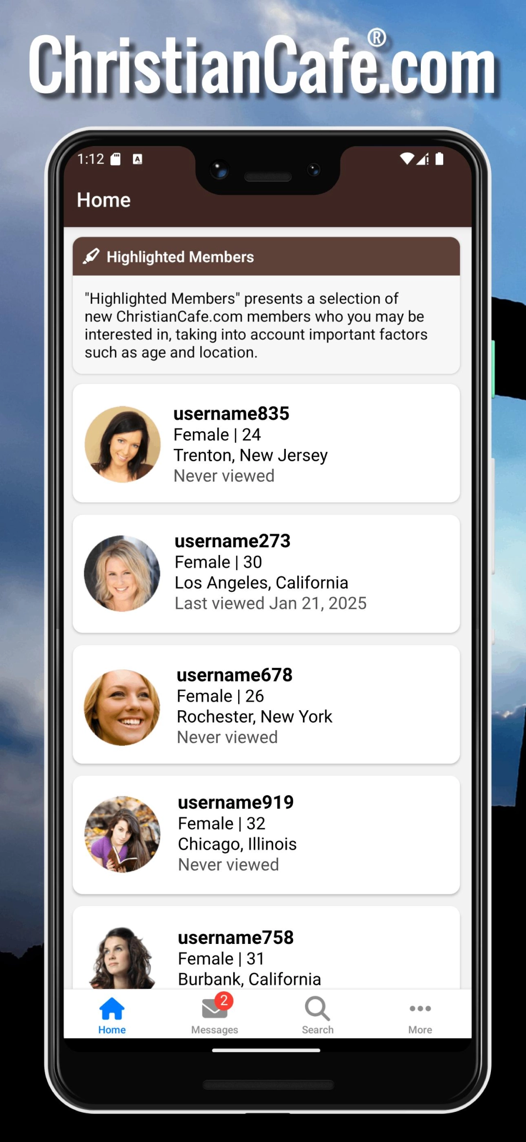 Running ChristianCafe.com - Dating on your computer allows you to browse clearly on a large screen, and controlling the application with a mouse and keyboard is much faster than using touchscreen, all while never having to worry about device battery issues.
