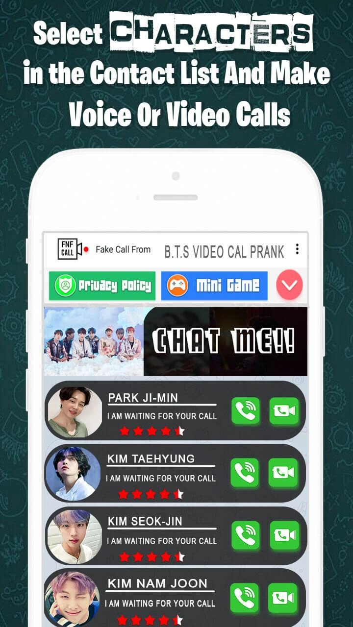 Download Fake Call BTS Video Call Chat and run it on your PC. Enjoy the large screen and high-definition quality on your PC!