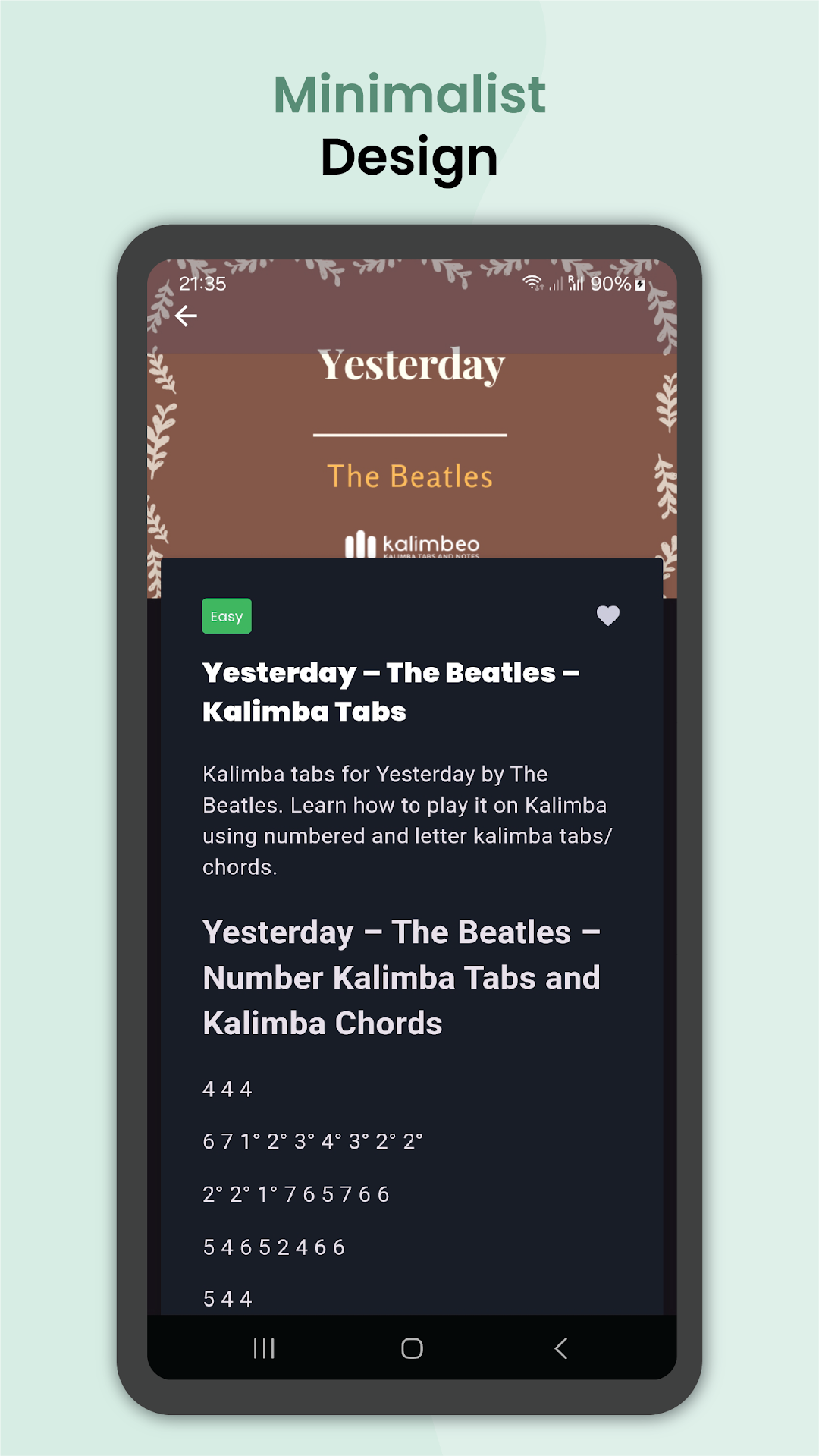 Kalimbeo is an app for Kalimba Tabs and Notes Tutorials for beginners, intermediate and advanced.You will find an amazing collection of free tabs for everyone, covering songs from many different genres.