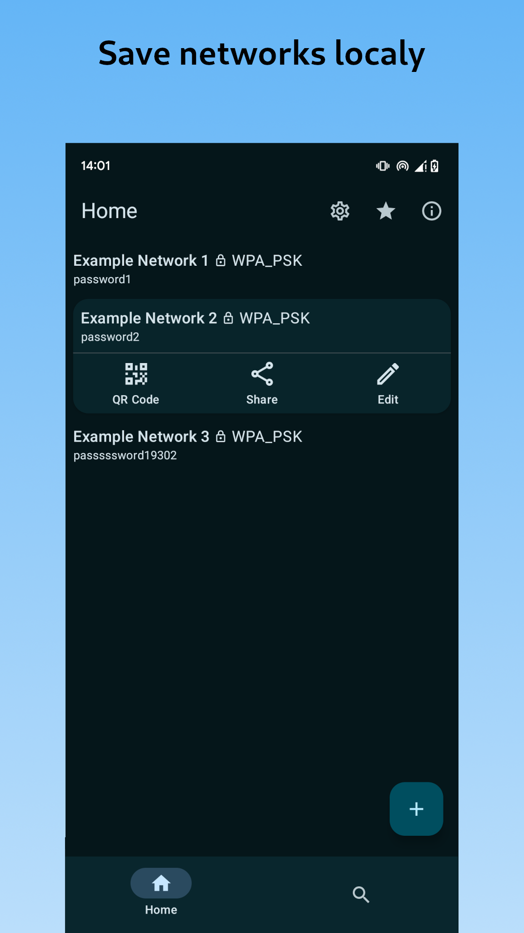 • Local Wifi credentials storage right in app