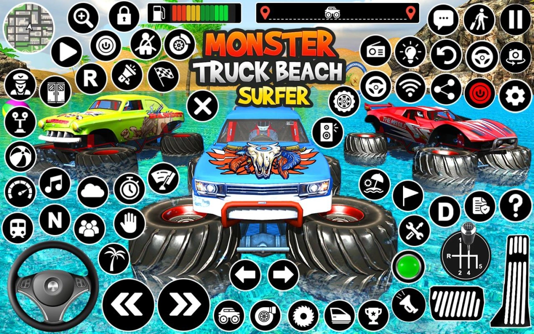 Running Monster Truck Water Surfing 3D on your computer allows you to browse clearly on a large screen, and controlling the application with a mouse and keyboard is much faster than using touchscreen, all while never having to worry about device battery issues.