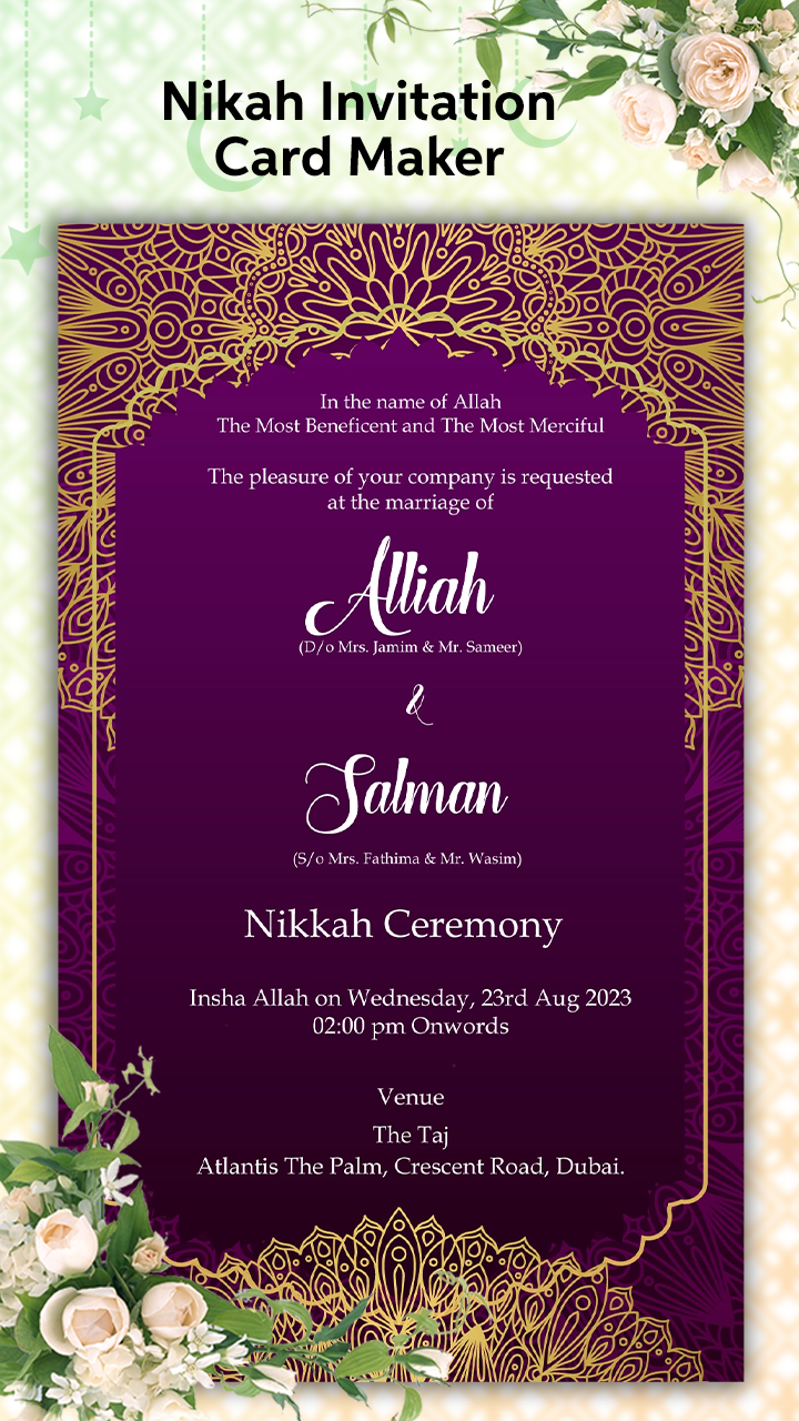 *Preview your wedding invitation card maker for muslim cards before downloading.