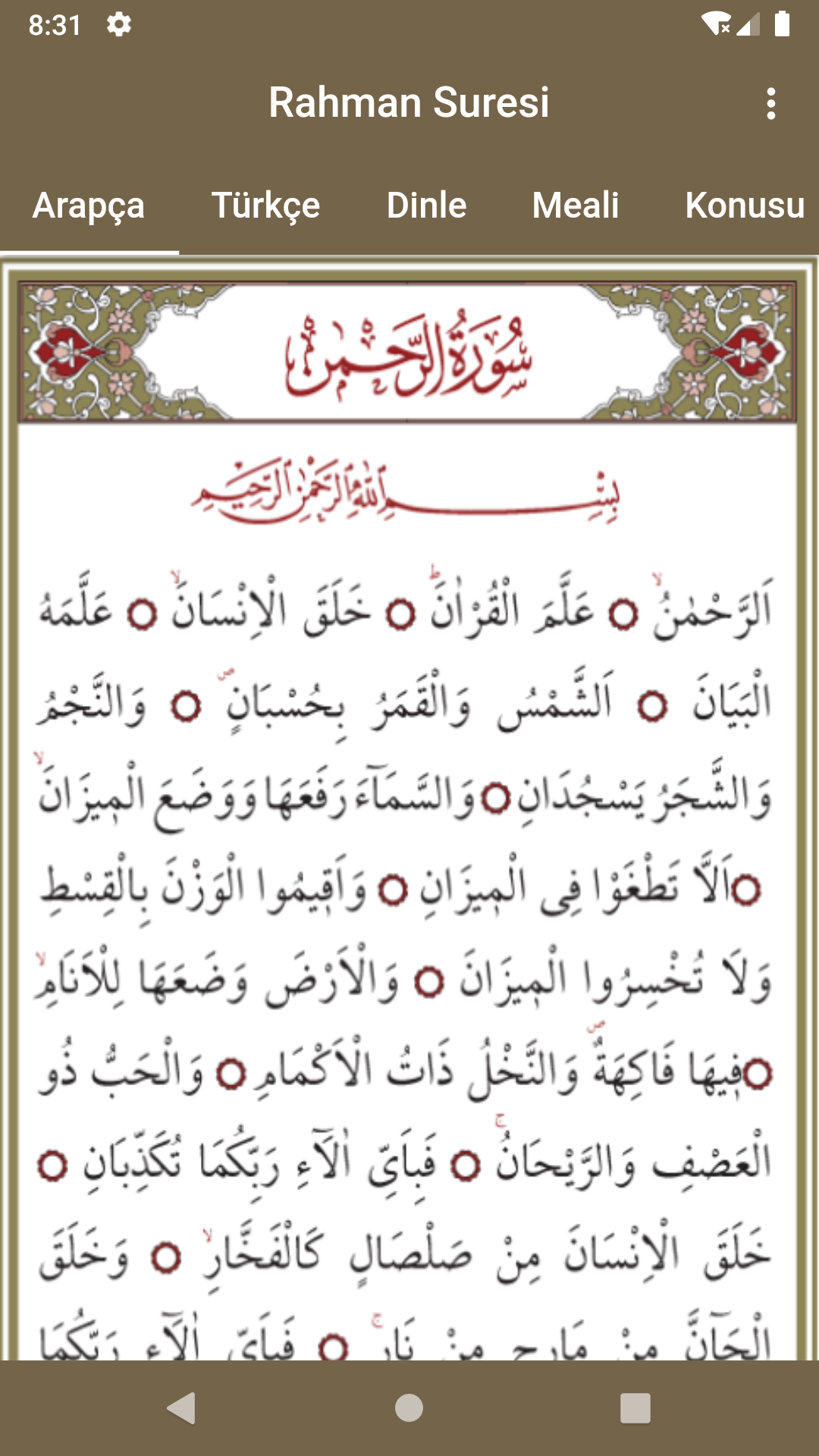- Arabic Recitation of Surah Rahman