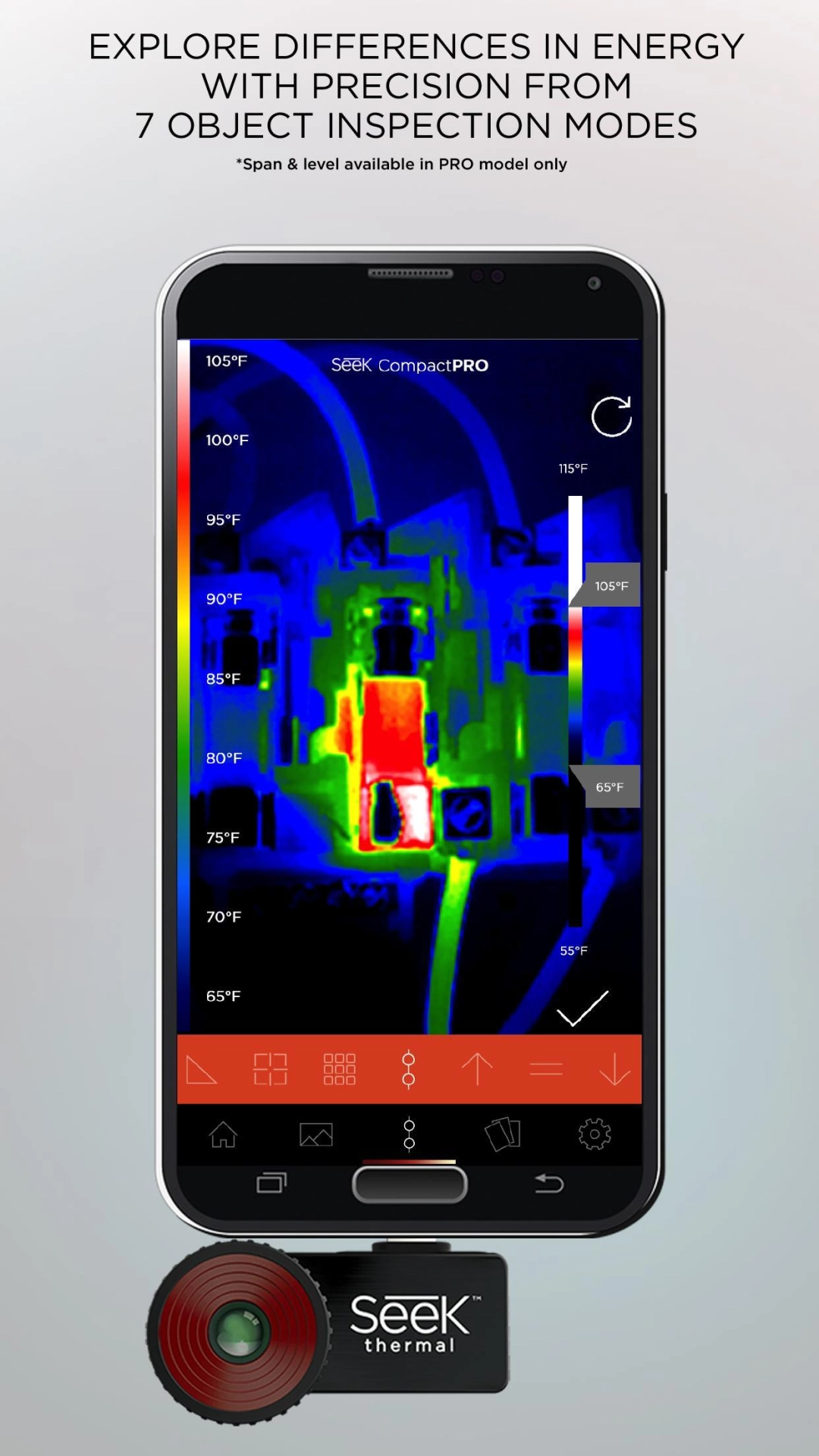 Running Seek Thermal on your computer allows you to browse clearly on a large screen, and controlling the application with a mouse and keyboard is much faster than using touchscreen, all while never having to worry about device battery issues.