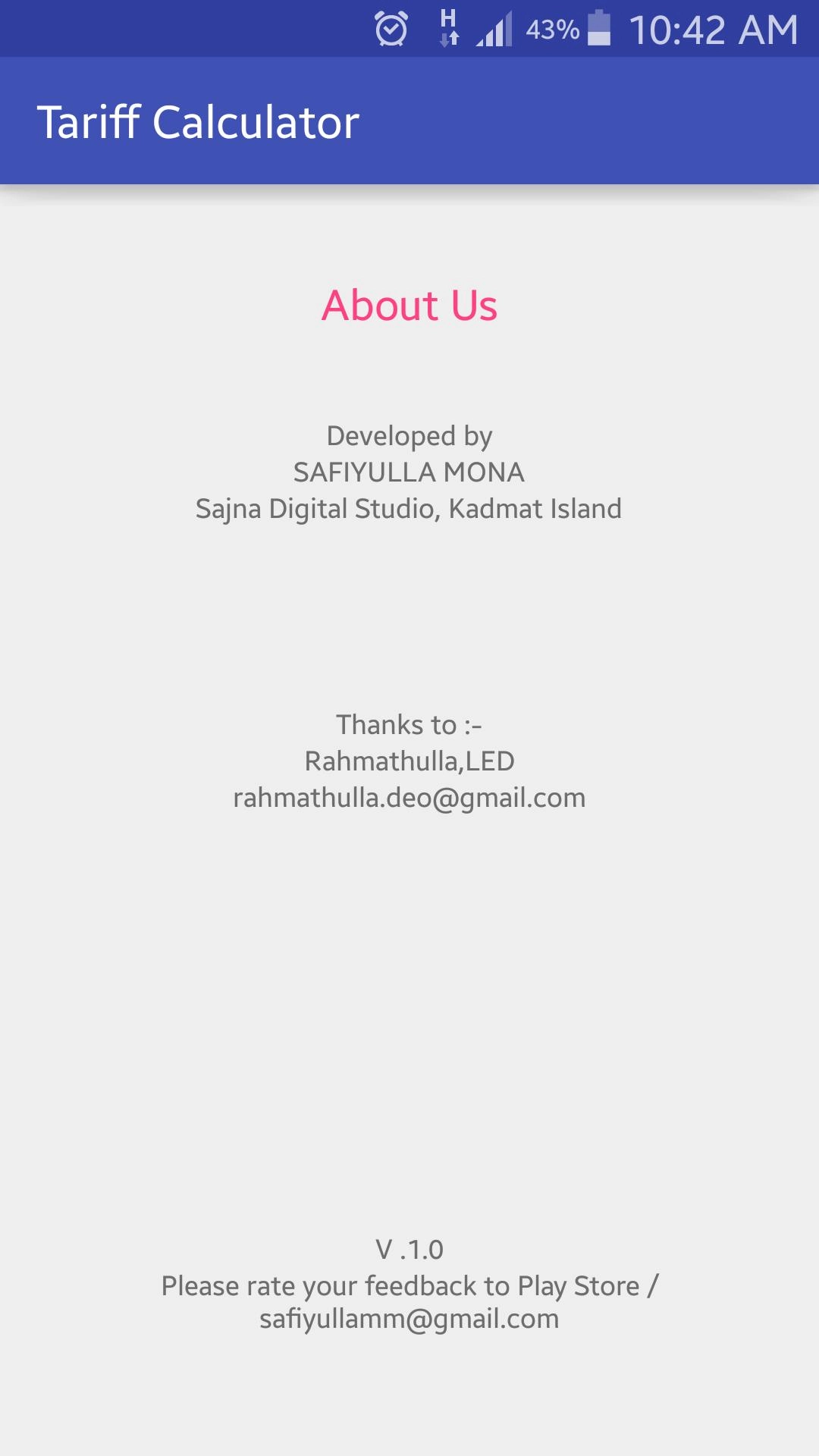 Tariff Calculator is a Tools application developed by SAFIYULLA MONA, Sajna Studio Kadmat Island, but with the best Android emulator-LDPlayer, you can download and play Tariff Calculator on your computer.