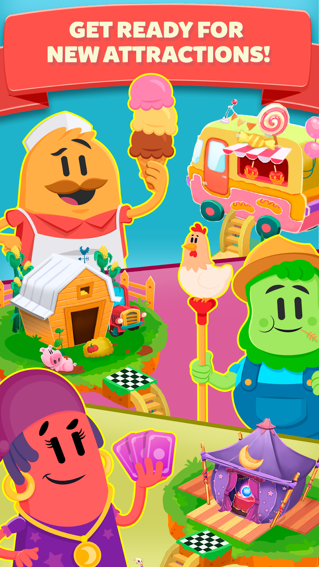 Guess the words behind the riddles and make it to the top before your opponent. On the way, ladders will speed up your progress but slides will set you back. Be careful!Gallerino has a whole fair to visit, but he is always obsessed with a new game, before it was crosswords, now it's a word search board game filled with riddles. He will teach you the ropes, it's up to you to go out and play with friends.