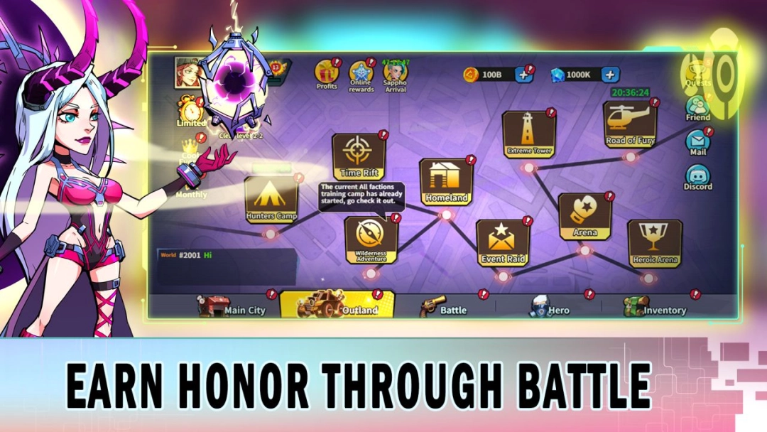Climb up the Unknown Tower for nonstop challenges, complete missions from various heroes in Agency, launch an all-out attack in the Road of Fury, forge powerful gears for your heroes, help friends defeat Bosses for special rewards, and enter various Raids for extra gains! More exciting contents are waiting for you to discover!
